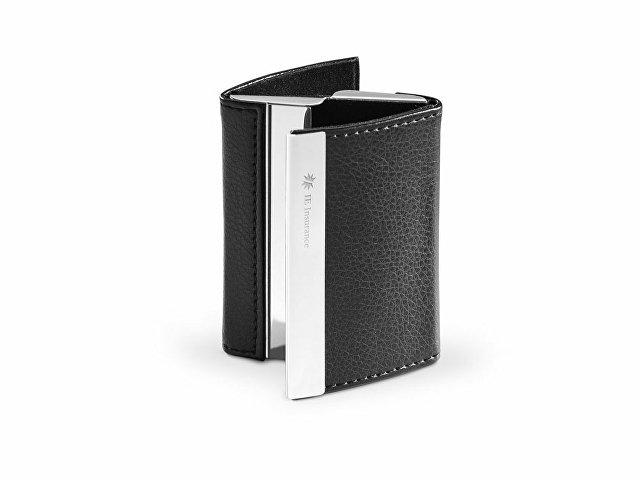 Двойная визитница из металла и искусственной кожи. Данная визитница поставляется в коробке. Вид нанесения, рекомендуемый поставщиком: гравировка