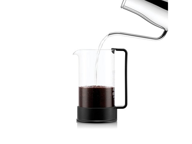 Френч-пресс из нержавеющей стали, пластика и боросиликатного стекла. Емкость до 1 л. 141 x 230 x 107 mm