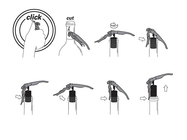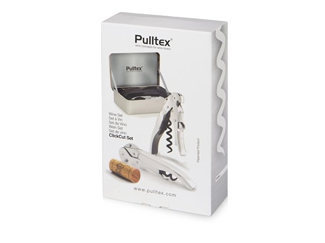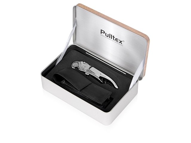 Готовое подарочное решение – это набор ClickCut Set от Pulltex. Он состоит из универсального штопора, футляра из натуральной кожи и подарочной металлической коробки с имитацией деревянного покрытия на внешней стороне. Штопор имеет запатентованную систему двойного рычага, что позволяет извлечь пробку с легкостью и не повреждая.